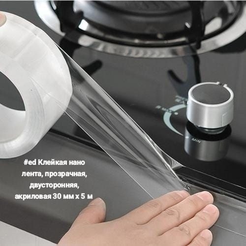 Клейкая нано лента, прозрачная, двусторонняя, акриловая 30 мм х 5 м 250 теңге